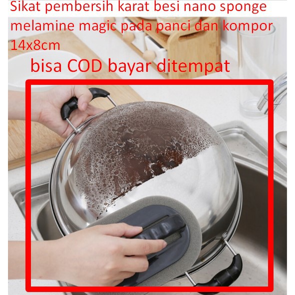 Sikat pembersih karat besi nano sponge melamine magic pada panci dan kompor 14x8cmSikat pembersih kawat atau bagian gosong pada panci dan kompor sehingga selalu bersih tidak perlu membeli yang baru