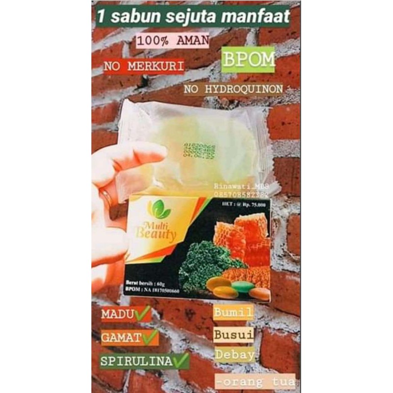 Multi Beauty Soap sabun kecantikan berjuta manfaat - menghilangkan jerawat dan bekasnya- komedo- kutu rambut dan ketombe- kebotakan- gatal-gatal- bruntusan- panu- luka bakar- luka jahit- harvest- kutu di kaki dan kaki pecah-pecah, dllSabun mbs ini aman ya karena di buat dari bahan alami dan pastinya sudah bpom Pembelian berapa pun tetap dilayani dan tidak akan mengurangi manfaatnya#MBS#MultiBeauty#MultiManfaat#SabunKecant