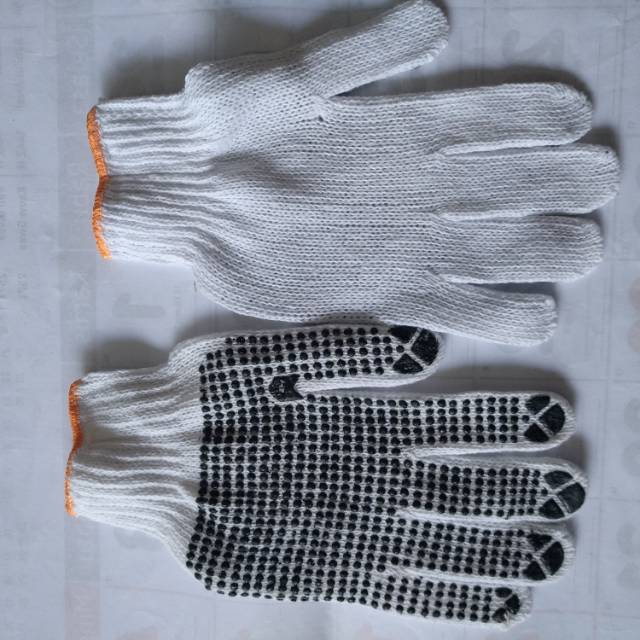 Produk Sarung Tangan Kain Bintik Hitam Serbaguna / Tukang / Industri biasa. Kurir biasa. servis toko pun biasa. soalnya ane orangnya biasa aja .