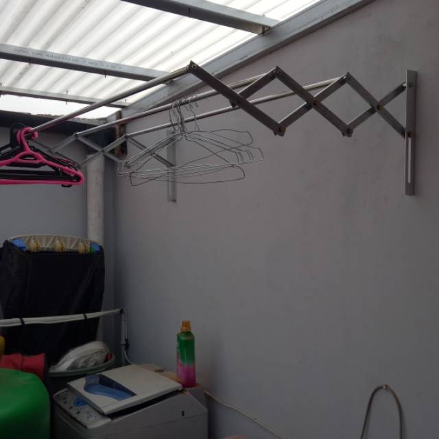 Panjang palang 150 cmJumlah galang 3 batangBahan stainles steel 201galvanis,siku aluminium tebalTinggi bracket 33cmLebar jika di bentangkan 70 cmKuat beban hingga 35 kgJarak palang ke palang 20 cmukuran palang 5/8×0,8mmsudah dapat dinabolt tembok 4 pcs 8mmcara pemasangan sangat mudah dan simpel#barang selalu ready ya kita produksi tiap hari jdi jgn ragu2 lagi langsung chekout