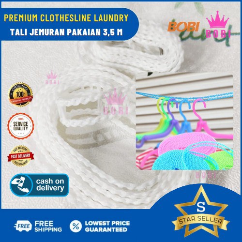 Tali jemuran sepanjang 3,5 meter yang sudah siap pakai. Di sepanjang tali, terdapat lubang untuk gantungan baju; sementara di kedua ujungnya terdapat kait stainless steel untuk meluruskan tali jemuran. Selain dipakai untuk jemuran baju, tali ini bisa juga dipergunakan di dalam ruangan sebagai tali gantungan baju atau dibawa untuk berpergian dan saat berkemah di luar ruangan.Bahan : Tali tambang + stainless steelKelebihan :- Tali Jemuran yang sudah siap pakai.- Di Sepanjang Tali, Terdapat Lubang Untuk Gantungan Baju.- Di Kedua Ujungnya Terdapat Kait Stainless Steel Untuk Meluruskan Tali Jemuran.- Tali Ini Bisa Juga Dipergunakan Di Dalam Ruangan Sebagai Tali Gantungan Baju.- Atau Dibawa Untuk Berpergian Dan Saat Berkemah Di Luar Ruangan.NOTE : warna putih