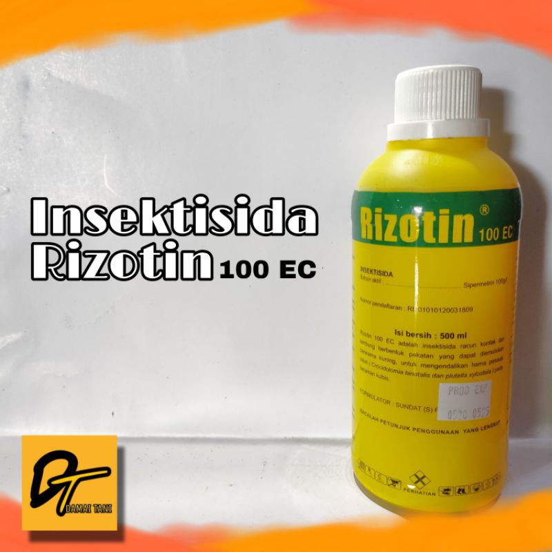 Rizotin 100 EC adalah insektisida kontak dan lambung berbentuk pekatan yang dapat diemulsikan berwarna kuning untuk mengendalikan hama perusak daun pada tanaman kubis, kacang-kacangan, bawang, tomat, cabai, dan tanaman pangan sayuran lainnya. Cara penggunaan adalah dengan cara dicampur air sesuai dosis kemudian disemprotkan pada titik titik yang terdapat hama sasaran.Bahan aktif : Sipermetrin 100