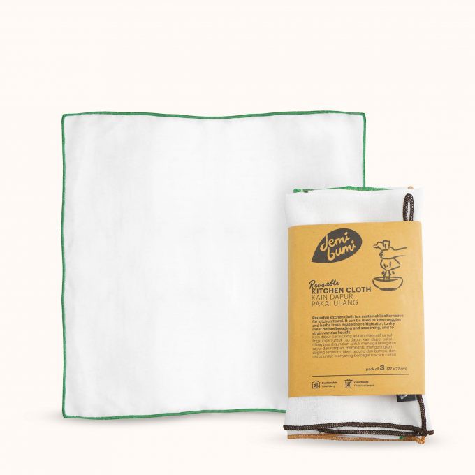Kain dapur pakai ulang adalah alternatif ramah lingkungan untuk tisu dapur. Kain dapur pakai ulang bisa digunakan untuk menjaga kesegaran sayur dan rempah, membantu mengeringkan daging sebelum diberi tepung dan bumbu, serta untuk menyaring berbagai macam cairan.Ukuran: 27 x 27 cm1 set berisi