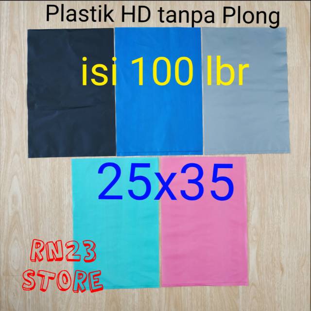 Plastik HD tanpa plong ukuran 25x35 untuk packing online shopWarna :- Hitam- Biru- Abu- Tosca- Pink1 pak isi 100 lembarTebal