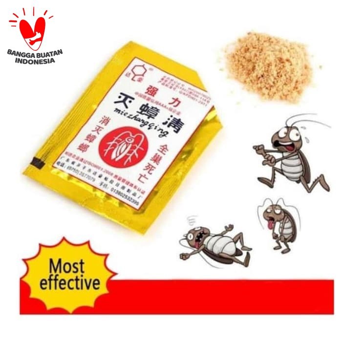 Bubuk racun ini sangat cocok digunakan pada tempat yang sering berkeliaran kecoa dalam jumlah yang banyak seperti Gudang, Dapur, Bagasi Mobil, dan lainnya. Dengan bubuk racun ini kecoa akan terpancing untuk memakan nya dan kemudian akan pingsan lalu mati.Merek: MiezhangqingHarga SatuanBarang Impor semua memakai Tanggal Kode Produksimasa pakai 2 tahun dari kode produksiKegunaan:Anti kecoa ini hadir dalam bentuk serbuk bubuk yang mampu menarik perhatian kecoa untuk memakannya sehingga kecoa menjadi teracuni lalu pingsan dan matiPemakaian:Pengaplikasian bubuk cockcroach pest repeller ini sangat mudah, Anda hanya perlu menyobek kemasan dan meletakkan serbuk racun kecoa di tempat yang banyak ditemukan k