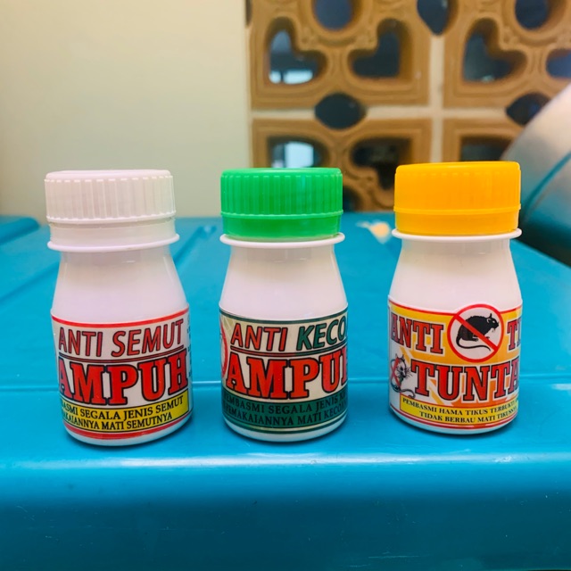 Anti Semut @Rp.40.000,-Anti Tikus @Rp.40.000,-Anti Kecoa @Rp.40.000,-Cara Pakai anti semut sebar sedikit saja dibeberapa tempat yg biasa semut lewat. biasanya sempatkan sebar 3 harian. Cara Pakai anti kecoa dan Anti Tikussebar sedikit saja di tempat kecoa atau tikus lewat. kalau tau sarang atau lubang tikusnya malah asik tuh. cemplungin aja 10 butir.. kemudian didekat tempat kita kasih anti tikus dan anti kecoa tadi simpan air dalam wadah ceper yg mudah dilihat oleh kecoa dan tikus. gunanya air tsb adalah supaya si tikus dan kecoa matinya nggak dimana2... jd nggak pusing sama bau bangkainya. saat kena tacun mereka pasti cari air buat netralin... nah kalau sdh kita sediakan jd mereka gak akan lari