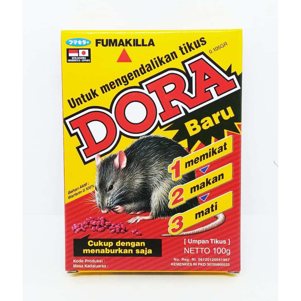 Dora untuk mengendalikan tikus Rodentisida antikoagulan berupa umpan siap pakai berbentuk butiran, berwarna merah muda untuk mengendalikan tikus. Rattus - rattus diardi pada bangunan bukan perumahan.Keistimewaan =- Dora adalah umpan beracun yang besar butirannya dibuat agar mudah dimaka tikus, yang terdiri dari ahan-bahan yang disukai tikus- Efeknya akan terlihat 3-4 hari setelah tikus memakan Dora, sehingga tikus akan mati tanpa disadari oleh tikus laiin- Tikus yang memakan dora akan mengalami pada penglihatannya dan berusaha untuk mencari tempat yang terang, sehinggabangkau tikus mudah di tem