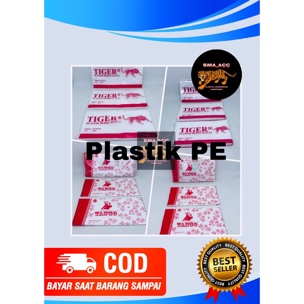 PLASTIK PE READY 2 MERKMERK TANGGO ISI +-150GRAMUKURAN 10x20 (1/4KG)UKURAN 12x25 (1/2KG)MERK TIGER ISI 200GRAMUKURAN 10x20 (1/4KG)UKURAN 12x25 (1/2KGDAPAT DIGUNAKAN UNTUK MENGEMAS MAKANAN DAN MINUMAN COCOK BUAT BUNGKUS-BUNGKUS GULA,BUNGKUS MINYAK,BUNGKUS MINUMAN,BUNGKUS ES KELAPA DAN LAIN LAIN TERGANTUNG KEBUTUHAN.BARANG READY