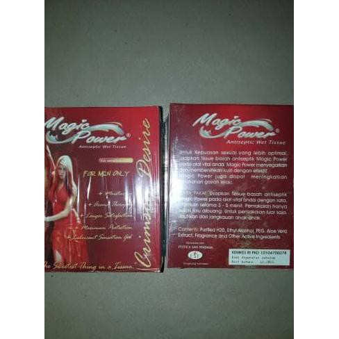 Barang selalu ready ya kak yaantiseptic wet tissue utk kepuasan sexual yg lbh optimal .usapkan tissu basah antiseptik magic power pada alat vital anda . magic powet menyegarkan dan membersihkan kulit dgn efektif . juga efekrif meningkatkan ketahanan gairah lelaki cara pakai usapakan magic powet pada alat vit dgn rata lalu diamkan 3 - 5