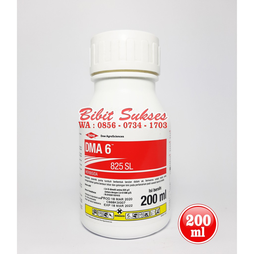 Herbisida DMA 6 825 SL 200 ml PEMBASMI RUMPUT LIAR SELEKTIF PADA PADIBahan aktif: 2,4-D dimetil amina (setara dengan 2,4-D: 686 g/l) : 825 g/lIsi Bersih : 200 mlHerbisida sistemik purna tumbuh berbentuk larutan dalam air, berwarna coklat muda. Mengendalikan gUlma berdaun lebar dan goongan teki pada tanaman padi sawah tanam pindah.Sangat efektif untuk tanaman Padi guna menberantas gulma daun lebar (Broadleaf) dan teki teki di sawah. jugasangat bagus untuk campuran ke glyphosate dan paraquat.Penyemprotan:- Rekomendasi Waktu: Pagi hari- Rekomendasi Dosis: 0,75 - 1 l/ha atau 20ml – 30ml per tengki 14 liter- Rekomendasi Lainnya: campurkan dengan pereka dan perata agar obat tercampur dengan air lebih merata dan tidak luntur saat terkena hujan.Dapat digunakan pada tanaman : karet, padi, tebu dan teh**HATI-HATI PRODUK SEJENIS DGN HARGA MURAH**KETERANGAN :PETUNJUK PENGGUNAAN ADA PADA LABEL KEMASAN.SIMPAN DI TEMPAT AMAN JAUHKAN DARI JANGJAUAN ANAK-ANAK.MASA EDAR DI FOTO PRODUK HANYA CONTOH, SILAHKAN CHAT UNTUK MASA EDAR TERBARU.BARANG SEBELUM DIKIRIM SUDAH KAMI PASTIKAN BARANG BARU,BERFUNGSI SESUAI KEGUNAAN DAN TIDAK ADA CACAT APAPUN. PERIKSA KEMBALI NOMOR HP (TELP) & ALAMAT LENGKAP. GUNA MEMPERCEPAT DAN MEMPERLANCAR PENGIRIMAN.PRODUK TOKO KITA READY STOCK, BISA LANGSUNG ORDER.. ATAU SILAHKAN CHAT KAMI UNTUK MEMASTIKAN WARNA / UKURAN / VARIASI YANG DI INGINKAN. PENGIRIMAN :BATAS WAKTU TERIMA ORDERAN SAMPAI JAM 15.00, DIATAS JAM 15.00 AKAN DIPROSES KEESOKAN HARI ( Ekspedisi J&T Ekpress) . BATAS WAKTU TERIMA ORDERAN SAMPAI JAM 12.00, DIATAS JAM 12.00 AKAN DIPROSES KEESOKAN HARI ( Ekspedisi POS KILAT KHUSUS ) .HARI MINGGU/LIBUR NASIONAL TIDAK ADA PENGIRIMAN~~~~~~>>>> Kepuasan pelanggan adalah tujuan utama kami <<<<~~~~~~ ~~~~~~~>>>>>> Terima Kasih Atas Kunjungan Anda <<<<<<