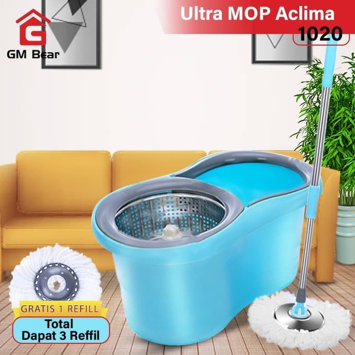 GM Bear Spin Mop Biru 1020 -Ultra Mop Aclima Blue 1020PERHATIKAN (MEMBELI = SETUJU) 1. Pesanan sudah kami QC baik jumlah maupun kualitas2. Mohon menanyakan ketersediaan stok yang diinginkan sebelum order ya3. Di tunggu order berikutnya. Happy Shopping ❤GM Bear Spin Mop Biru 1020-Ultra Mop Aclima BlueUltra Mop : Satu ciptaan baru, mop yang berputar 360 derajat. Ultra Mop membantu kita untuk gaya hidup yang bersih dan sehat dengan mudah pada harga yang murah. ultra mop merupakan peralatan membersih yang mendatangkan berbagai manfaat yang menakjubkan dan mempermudah kita dalam mengepelKepala Ultra Mop dirancang khusus untuk berputar 360 derajat, membersihkan setiap sudut secara merata. Kain fiber pembersih khas membersih secara efektif, dan anti bakteri. Tidak merusakkan jenis lantai atau permukaan. .Cara Pemasangan Kain Pel :1. Lepaskan dahulu sekrup paling atas dari kain pel,2. Masukan sekrup yang terlepas kedalam tongkat pel,3. Putar dan kencangkan,Cara Pemasangan Tongkat Pel :1. Sambungkan kedua bagian tongkat pel,2. Putar dan kencangkanCara Penggunaan :1. Injak bagian bulat alat pel,2. Luruskan tongkat pel tegak lurus dengan kain pel3. Alat pel siap untuk digunakan,4. Buka pengunci pada tongkat,5. Tekan kebawah pelnya pada ember, Pel akan otomatis mutarCocok digunakan untuk :1. Lantai kayu,2. Lantai semen,3. Lantai keramik,4. Lantai batuUkuran Produk :47 X 26 X 27Terdiri dari :* 1 buah ember dengan pengering stainless* 1 buah tongkat pel 125 CM* 1 buah kain pel diameter 39 x 5 CM* Free 1 Buah Reffil#pel #pellantai #alatpel #pembersih